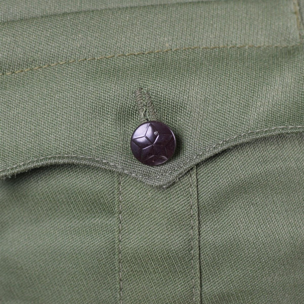 • La couleur vert olive profond reflète ses origines militaires tout en offrant un look polyvalent qui s'adapte à diverses tenues. Fabriquée dans un tissu solide et respirant, cette chemise assure un confort toute la journée. Le devant boutonné offre un ajustement sûr, tandis que le col structuré ajoute une touche pointue et professionnelle. Les poignets boutonnés permettent un ajustement réglable, le rendant adaptable à différentes conditions météorologiques.