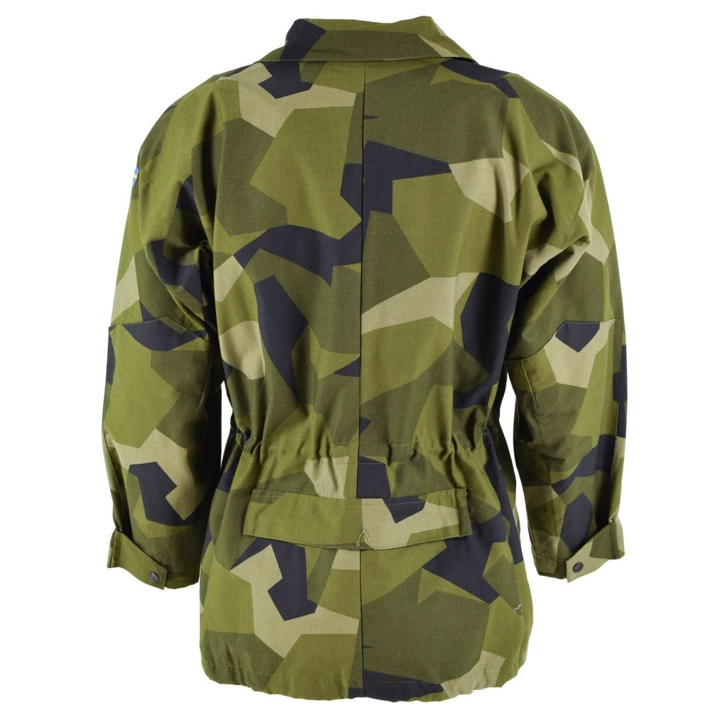 La veste de camouflage éclatée militaire suédoise originale M90 est une veste de qualité militaire conçue pour les activités de plein air. La veste camouflage éclatée M90 comprend des poches sur la poitrine, sur les côtés et à l'arrière pour ranger des objets, un bas de taille et des poignets réglables pour un ajustement confortable et personnalisable. Le motif de camouflage éclaté M90 aide à se fondre dans les environnements naturels, ce qui en fait un choix populaire pour les chasseurs et les amateurs de plein air.