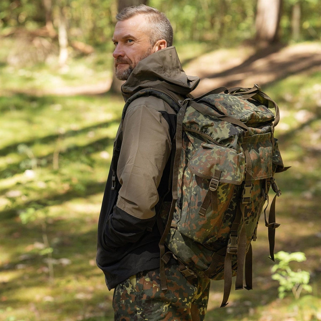 Authentique sac à dos allemand Bundeswehr 65L, conçu pour une utilisation sur le terrain et construit à partir de matériaux robustes avec une doublure caoutchoutée étanche. Idéal pour la formation tactique, la randonnée ou le camping.