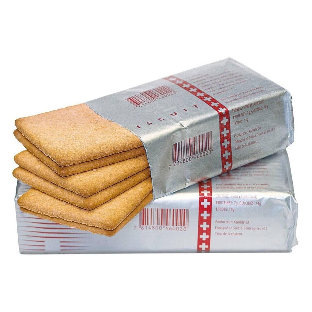 - Ces biscuits sont légers et faciles à transporter, ce qui en fait un choix parfait pour la randonnée, le camping ou les situations d'urgence. Leur conception compacte vous permet de les emporter partout sans prendre trop de place. Que vous participiez à une longue randonnée en plein air ou que vous vous prépariez à des situations d'urgence inattendues, le biscuit militaire suisse fournit un regain d'énergie fiable lorsque vous en avez le plus besoin.