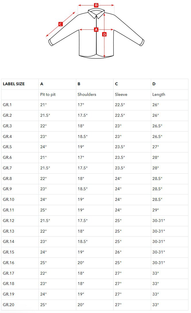 | Gr.15 | 24" | 19" | 26" | 30-31" |