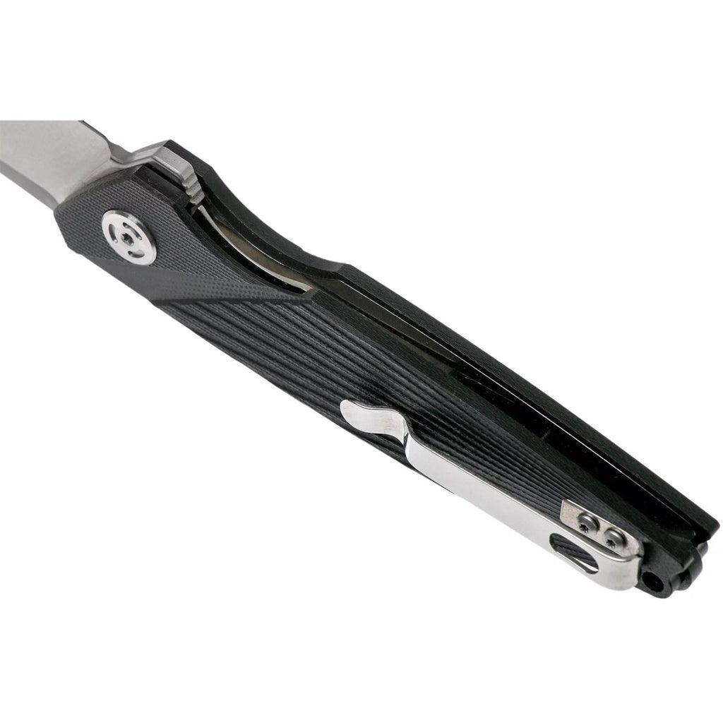 • Le poignée G10 noire fournit un poignée sûre et antidérapante, même dans des conditions humides ou poussiéreuses. Il est confortable lors d'une utilisation prolongée et vous donne un contrôle total. UN agrafe en acier inoxydable 420J2B rend le transport simple et sûr, afin que vous puissiez toujours le garder à portée de main.