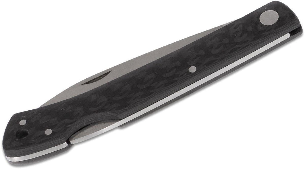 • Le manche en fibre de carbone fournit un adhérence solide mais légère. Sa forme ergonomique assure le confort et réduit la fatigue des mains lors d'une utilisation prolongée. La poignée ajoute durabilité sans sacrifier la portabilité, ce qui rend le couteau facile à transporter partout où vous allez.