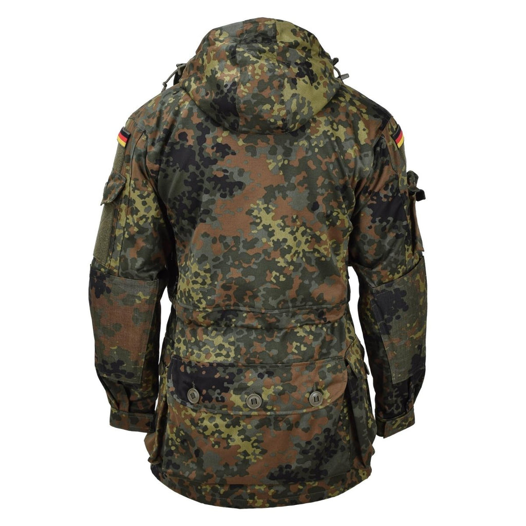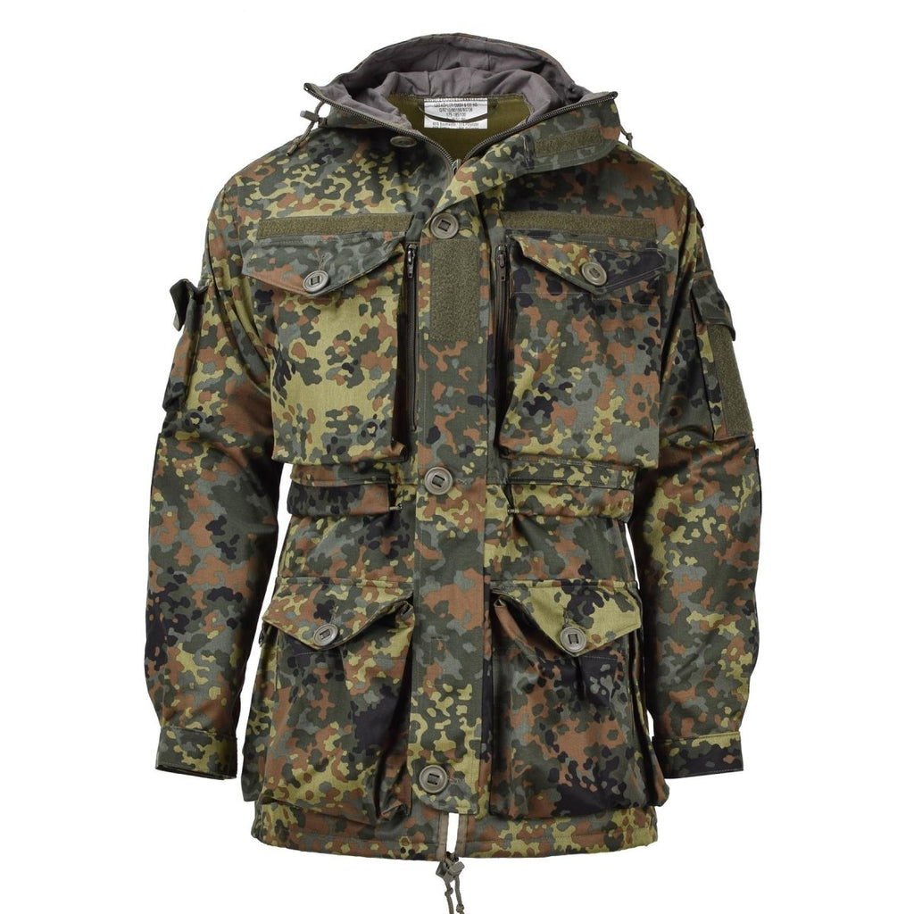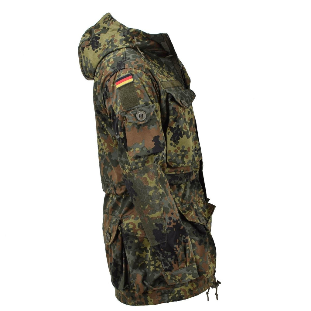 Fabriquée à partir d'un mélange de coton 65 % coton et 35 % polyester, cette veste est non seulement fonctionnelle mais aussi confortable. Le motif camouflage utilisé est le classique Flecktarn, ce qui la rend parfaite pour les activités de plein air ou les tenues décontractées avec une touche d'inspiration militaire.