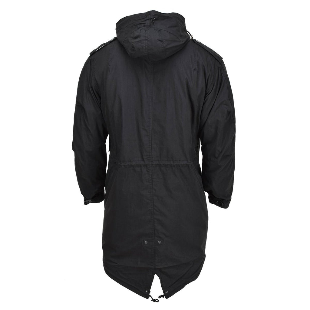 Présentation de la parka MIL-TEC M51, une veste robuste conçue pour la chaleur et la durabilité dans des conditions difficiles. Ce vêtement d'inspiration militaire est doté d'une coque en coton noir robuste, assurant une protection contre les éléments.