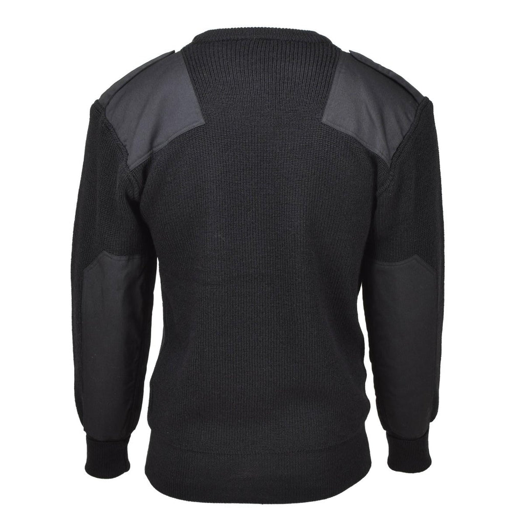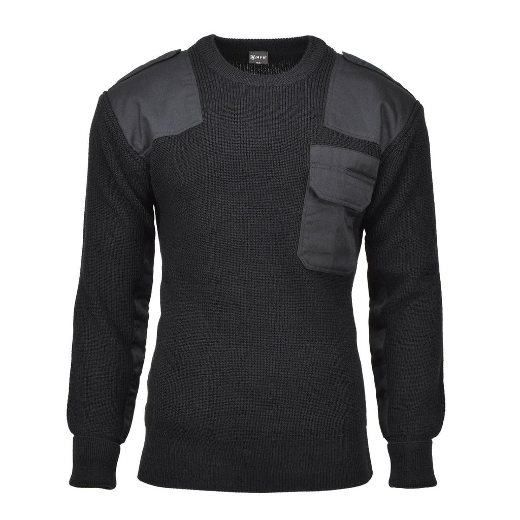 Pull commando de marque MFH en maille côtelée, pull renforcé en laine noir NEUF