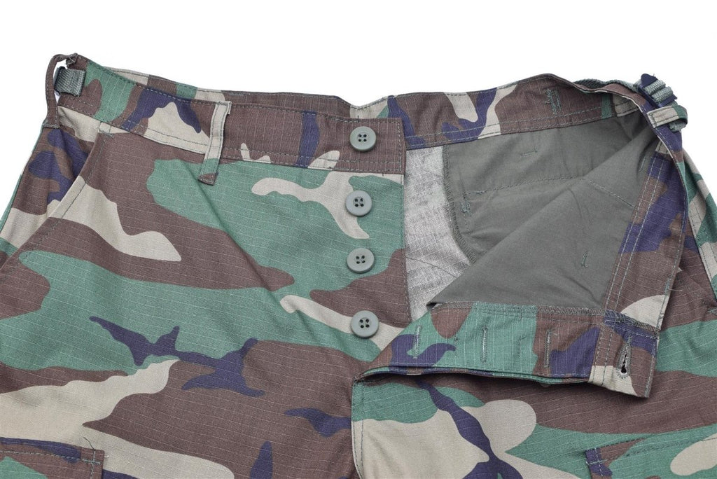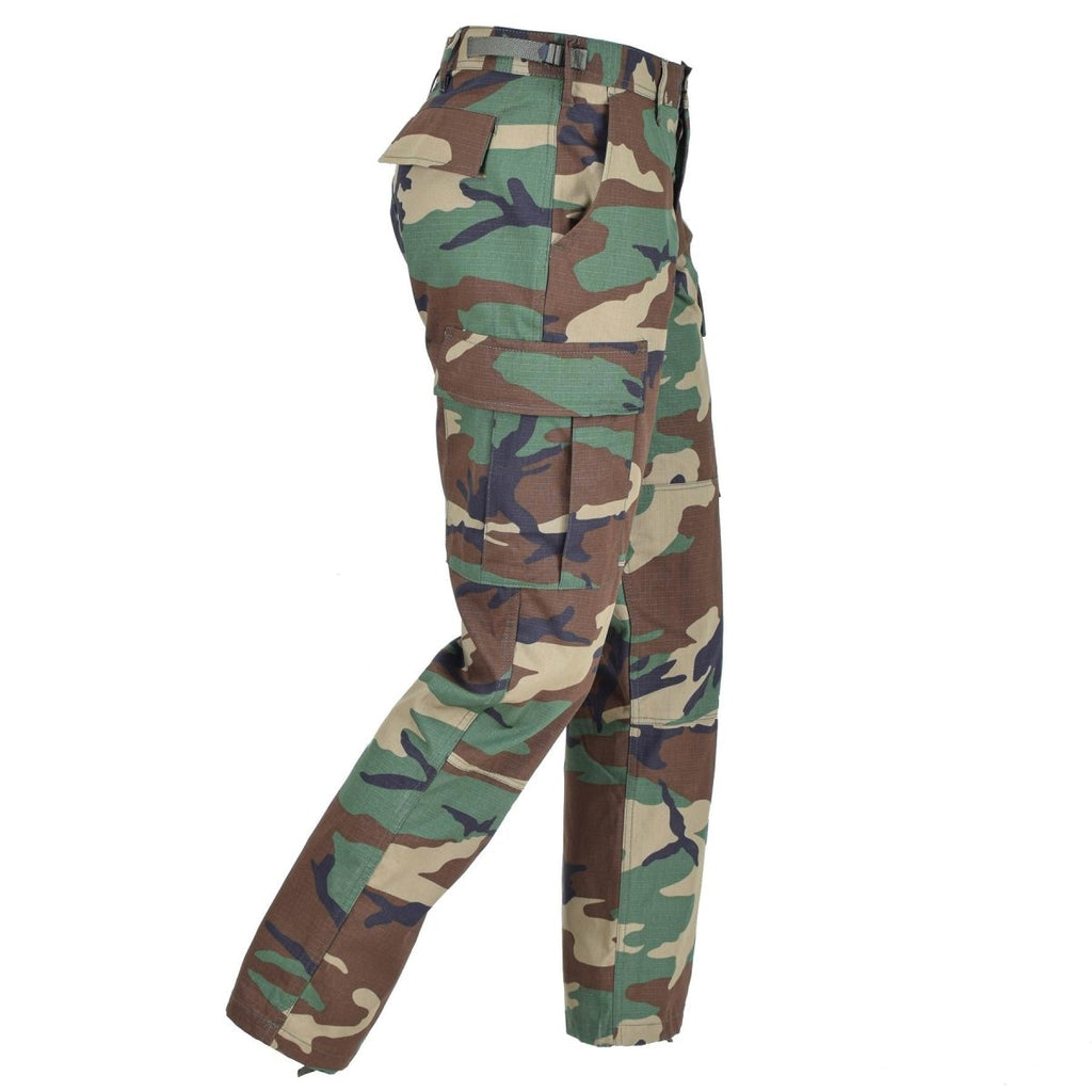 - De plus, fabriqués à partir d'un matériau ripstop robuste, ils résistent aux déchirures et aux déchirures, garantissant ainsi leur durabilité. De plus, le motif de camouflage boisé aide à se fondre parfaitement dans l’environnement naturel. Doté de multiples poches, ce pantalon Woodland BDU s'adapte à diverses activités de plein air, de la chasse au camping en passant par l'entraînement militaire.