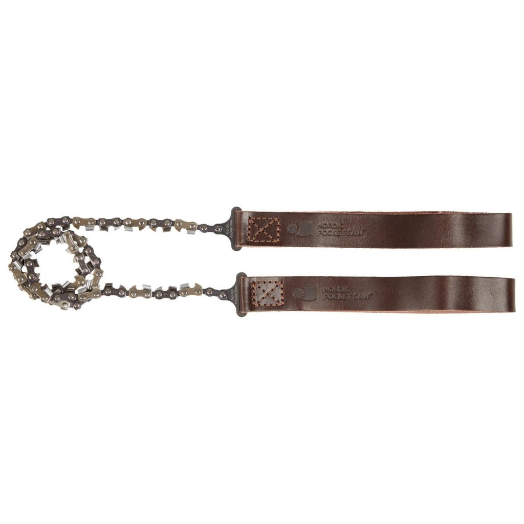 - Fabriquée en acier à haute teneur en carbone traité thermiquement, la chaîne résiste aux conditions difficiles et offre une durabilité durable. Il coupe le bois rapidement et efficacement, offrant des performances puissantes en cas de besoin. L'édition premium comprend des poignées et un étui faits à la main, tous deux fabriqués en Suède. Le cuir est 100 % suédois et biologique, ajoutant authenticité et qualité au produit.