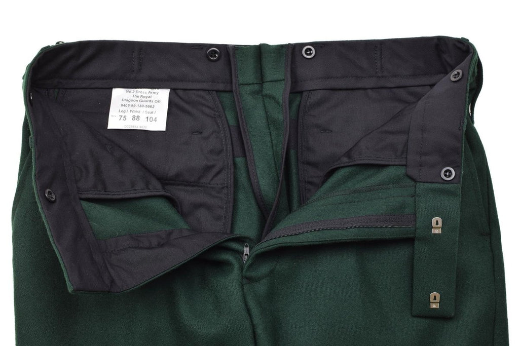 Présentation du pantalon habillé vert foncé pour homme Original British en laine. Plongez dans la tradition de l'armée britannique avec ce pantalon habillé vert foncé original des Royal Dragon Guards. Conçu pour une apparence distinguée et raffinée.