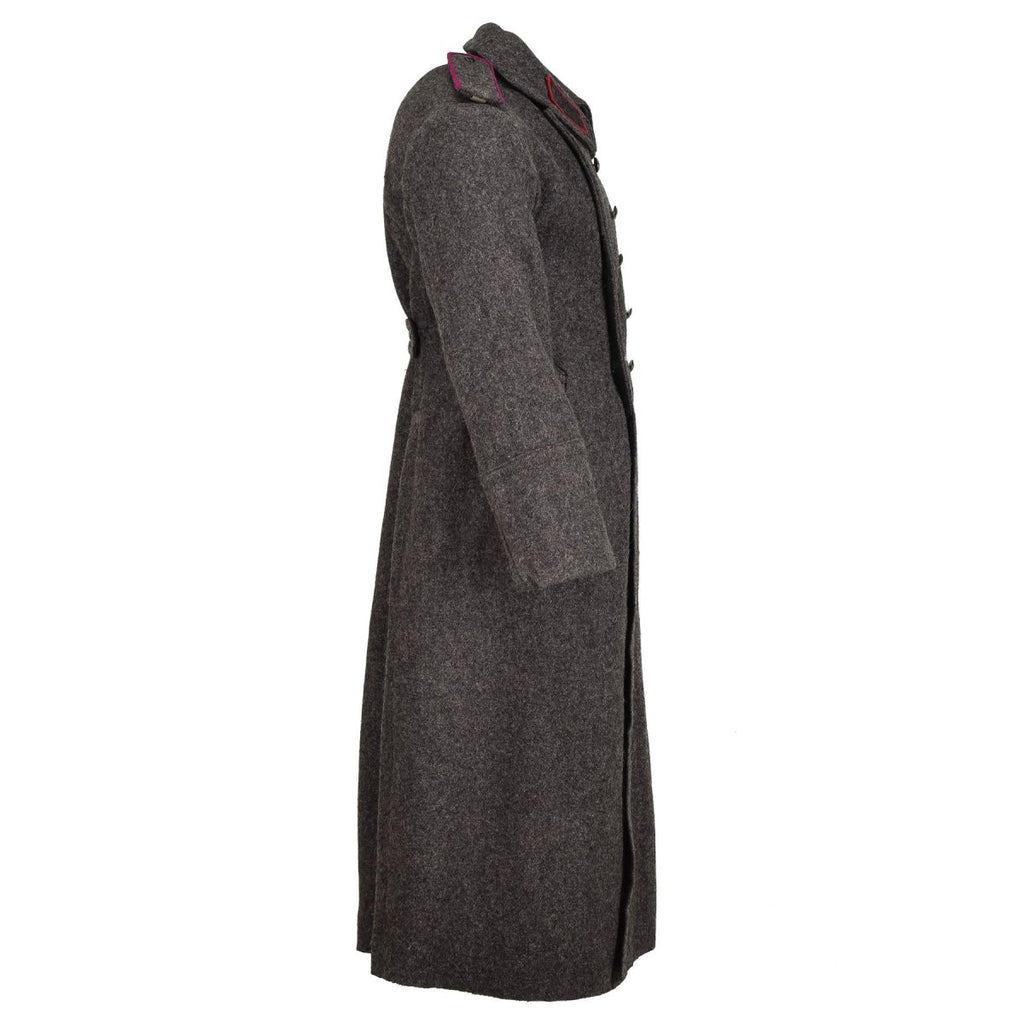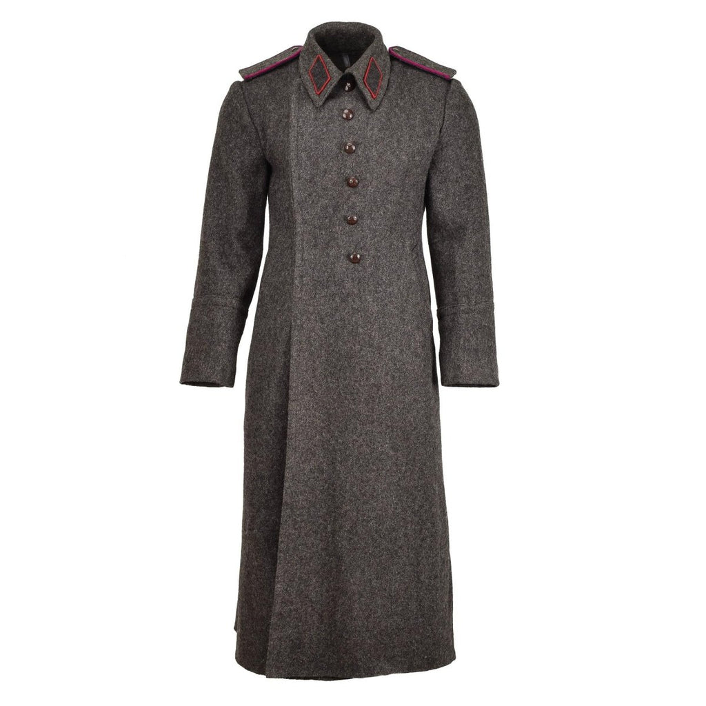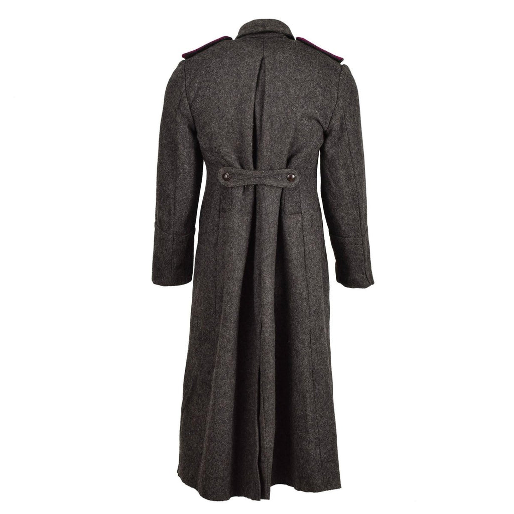 Présentation du pardessus en laine gris militaire bulgare original, un manteau en laine vintage classique et durable, idéal pour les conditions hivernales extrêmes.