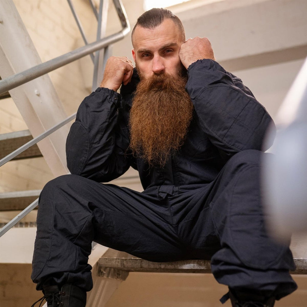Cette combinaison avec capuche et fermetures à glissière est une combinaison noire originale de la police militaire britannique résistante à l'eau et aux flammes. Elle est conçue avec des chevilles et des poignets réglables, des genoux et des coudes renforcés et fabriquée dans un matériau hydrofuge et résistant aux flammes pour une protection et une durabilité maximales.