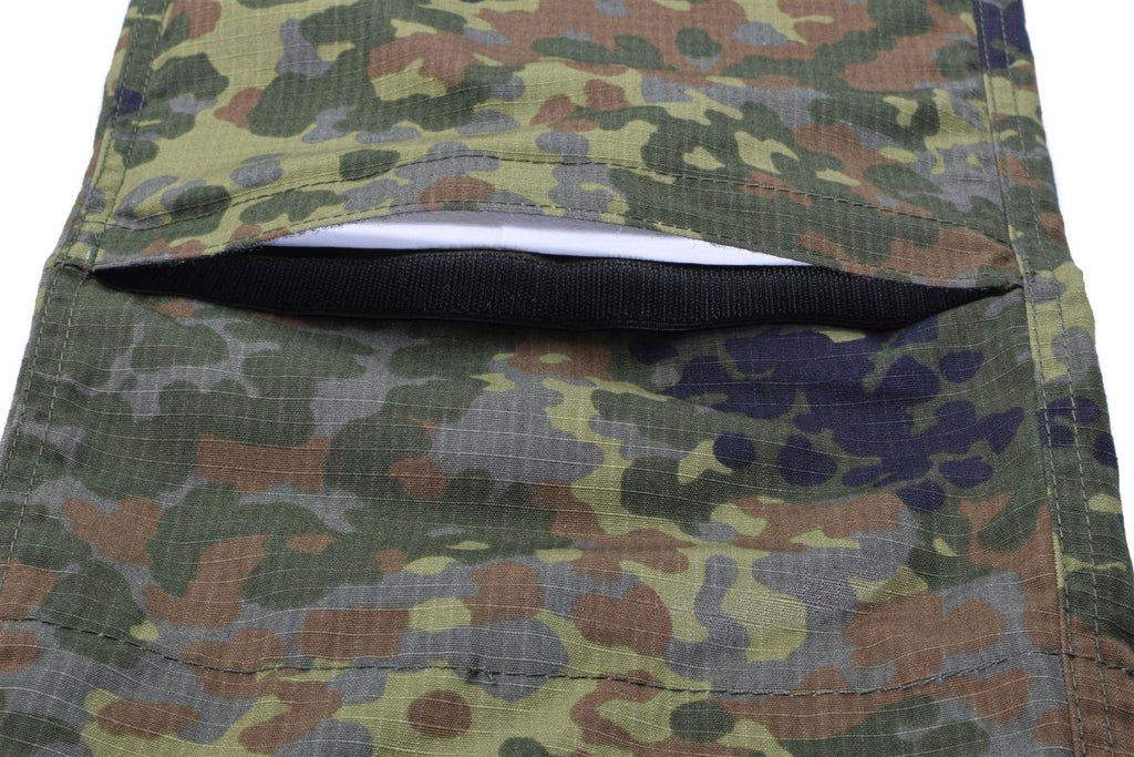 • Fabriqué à partir d'un matériau ripstop de haute qualité, ce pantalon cargo flecktarn résiste aux déchirures et résiste à une utilisation intensive. Le siège et les genoux renforcés ajoutent une durabilité supplémentaire, ce qui les rend idéaux pour ramper, s'agenouiller ou pour une activité intense. Le motif de camouflage flecktarn se fond parfaitement dans l'environnement naturel, offrant une dissimulation efficace dans les zones boisées.