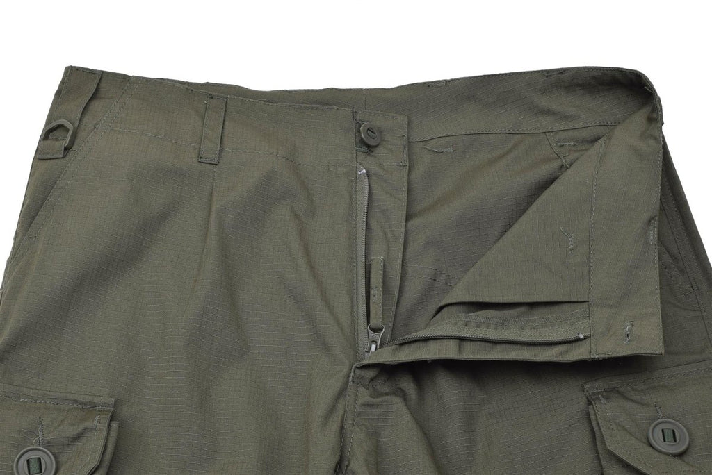 - Fabriqué dans un matériau ripstop olive de haute qualité, ce pantalon résiste aux déchirures et à l'abrasion. Ils offrent des performances fiables même dans des conditions difficiles. Que vous participiez à une mission militaire ou à une aventure en plein air, ce pantalon cargo renforcé offre la durabilité dont vous avez besoin.