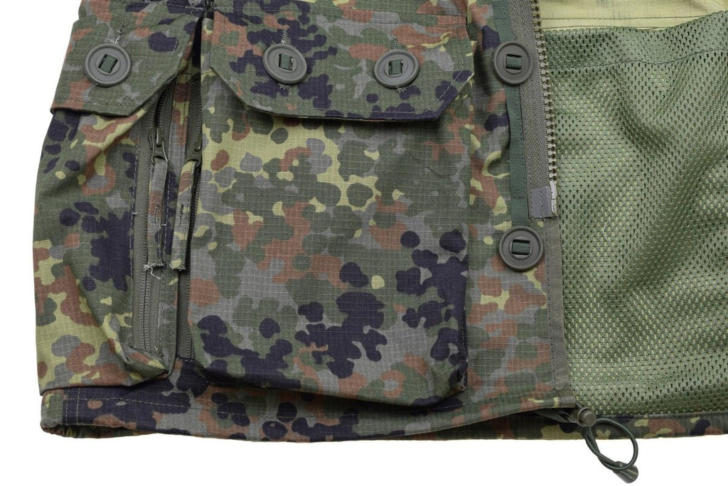 • La durabilité transparaît dans chaque détail de cette parka à capuche camouflage flecktarn. Le matériau ripstop résiste aux déchirures et à l'abrasion, ce qui le rend parfait pour les activités de plein air difficiles. La taille et les poignets réglables permettent un ajustement sur mesure, assurant un confort tout au long de la journée. La ventilation zippée bidirectionnelle sous les bras aide à réguler la température de votre corps, vous gardant au frais lorsque l'action s'intensifie.