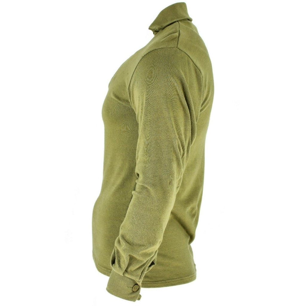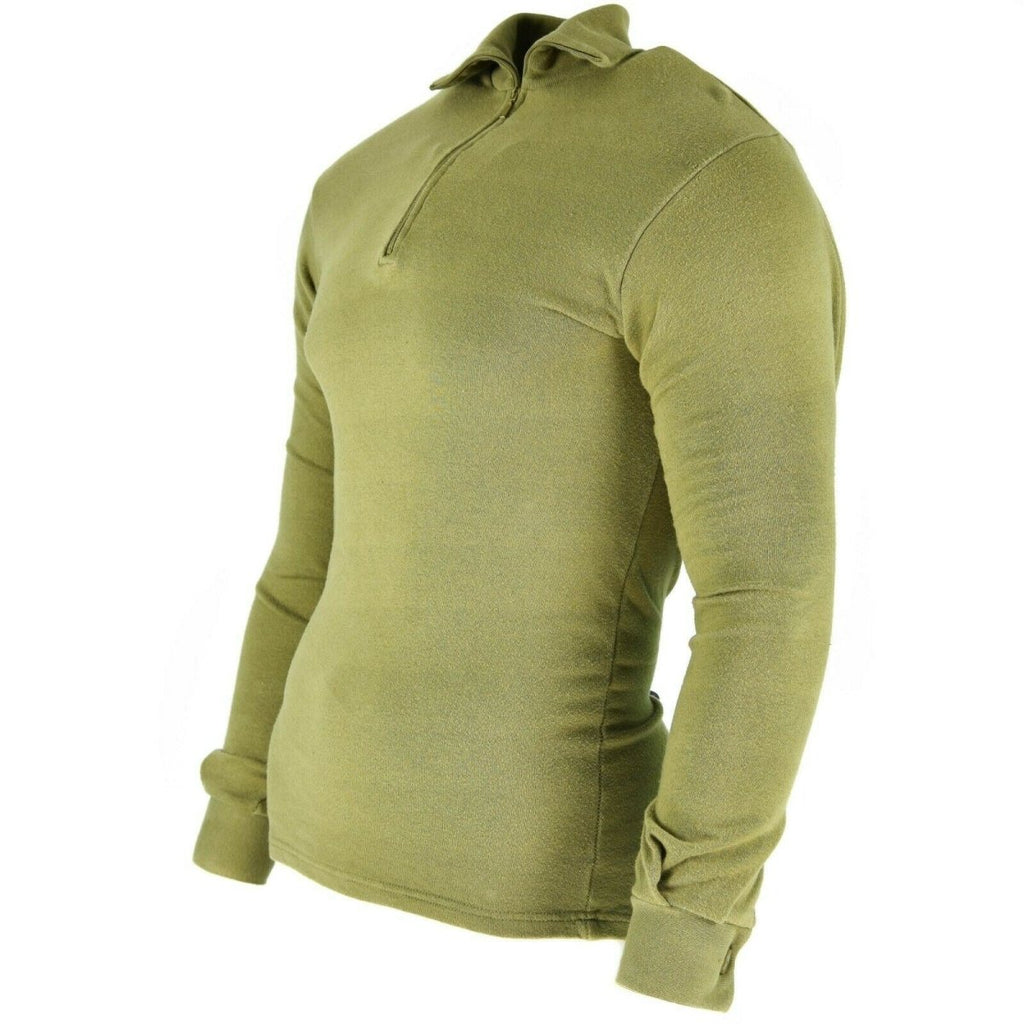 Maillot de corps en tricot militaire britannique original avec fermeture éclair dans un vert OD pratique (Olive Drab) – un ajout polyvalent et essentiel à votre équipement de plein air ou militaire, conçu pour offrir à la fois chaleur et confort. Ce maillot de corps est plus qu'une simple sous-couche ; il représente l'héritage militaire britannique, la fonctionnalité et l'adaptabilité dans des conditions difficiles.