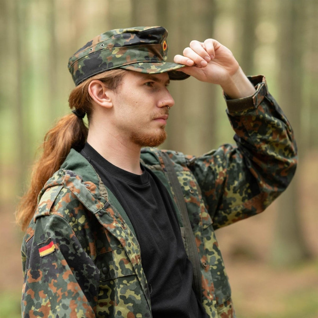 Ayez une allure élégante et soyez confiant avec cette casquette Flecktarn originale de l'armée allemande. Cette casquette militaire respirante et pliable est parfaite pour les aventures en plein air ou tout simplement comme accessoire de mode. Affichez votre style tactique avec ce chapeau militaire original dans sa couleur camouflage intemporelle BW Woodland. De plus, le motif camouflage classique Flecktarn vous permet de vous fondre dans votre environnement tout en restant unique. Améliorez votre style maintenant avec ce chapeau militaire unique en son genre.