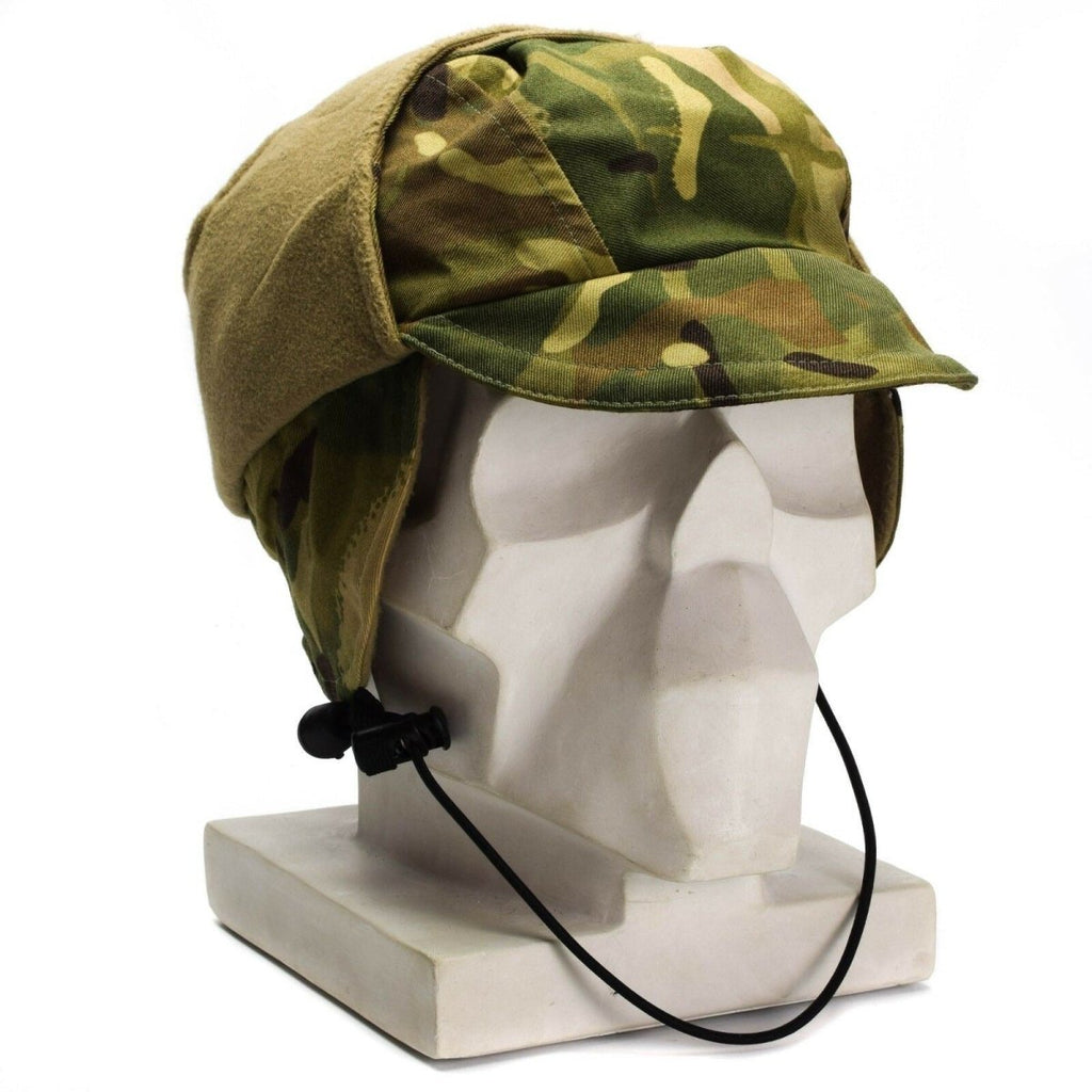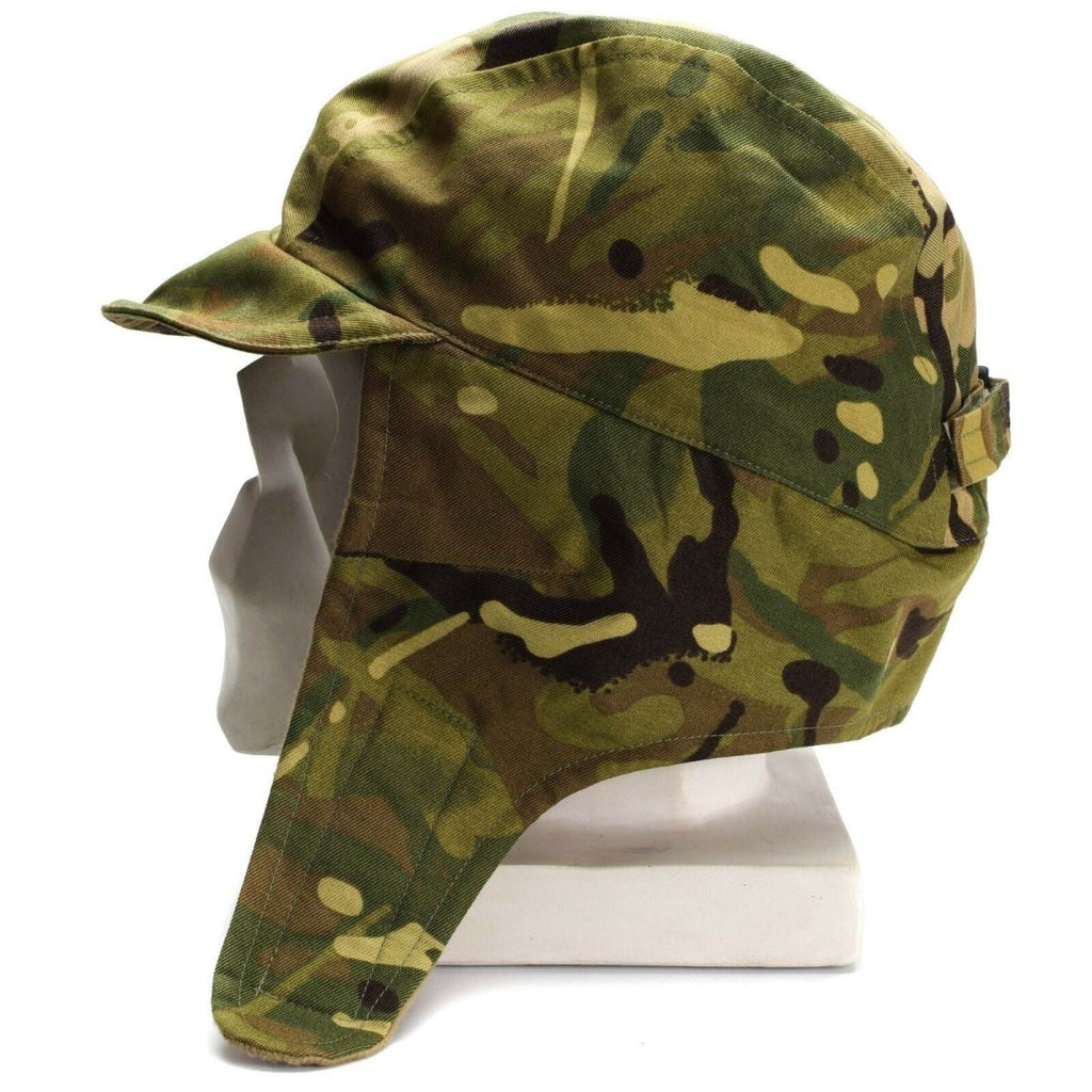 Il s'agit d'une casquette de parachutiste militaire britannique imperméable en camouflage Multi-Terrain Pattern (MTP). Il est conçu pour protéger la tête et garder le porteur au sec dans des conditions humides. La casquette est fabriquée dans un style parachutiste classique et présente le motif de camouflage MTP, qui a été développé pour se fondre dans divers terrains trouvés dans les opérations militaires britanniques. La casquette est conçue pour être utilisée par les parachutistes et autres militaires, et est conçue pour être à la fois durable et pratique pour une utilisation dans des environnements difficiles.