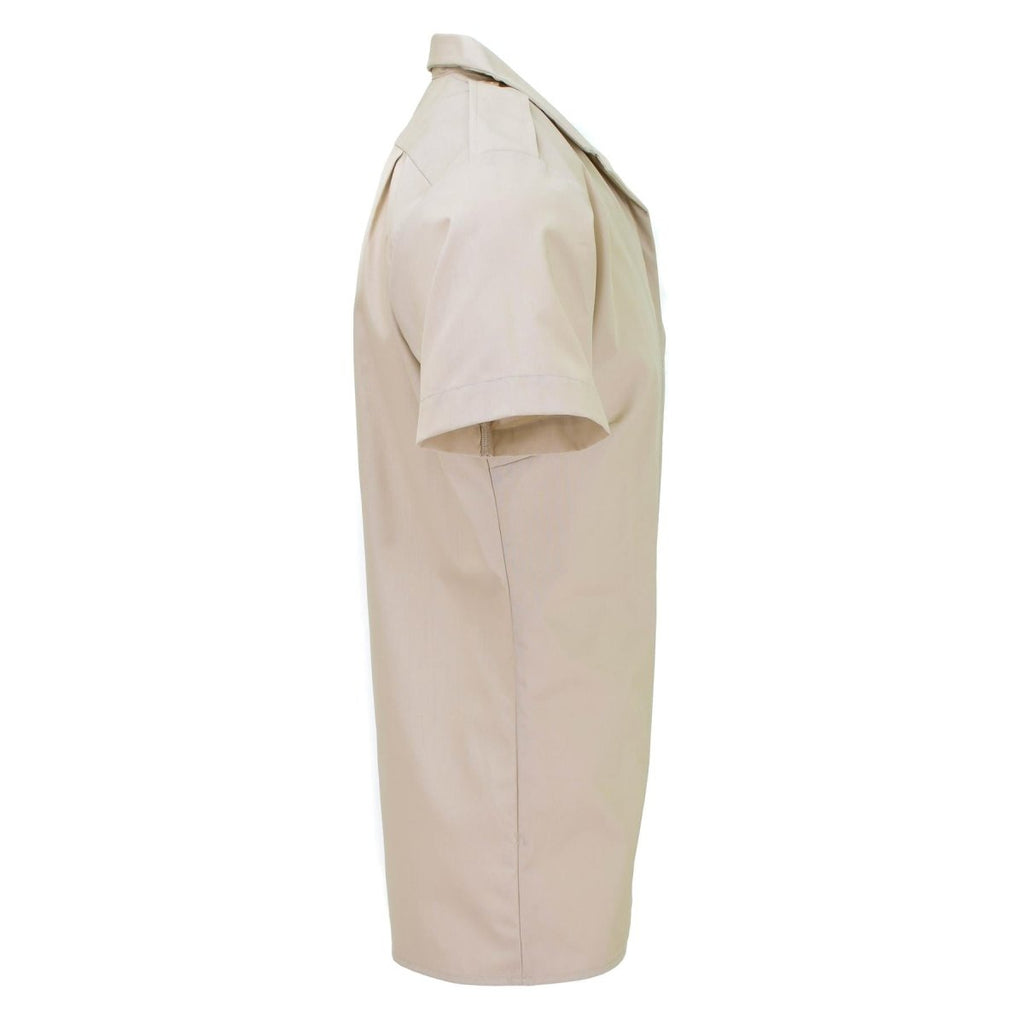 Une chemise militaire britannique pour femme de couleur kaki est une chemise à manches courtes portée par les femmes soldats de l'armée britannique. Elle est conçue pour être portée lors d'occasions formelles et est fabriquée à partir de matériaux durables et de haute qualité qui peuvent résister aux exigences du service militaire. La couleur kaki est un ton sobre et terreux qui est souvent utilisé dans les uniformes militaires. Ce type de chemise convient aussi bien aux tenues officielles qu'aux tenues décontractées.