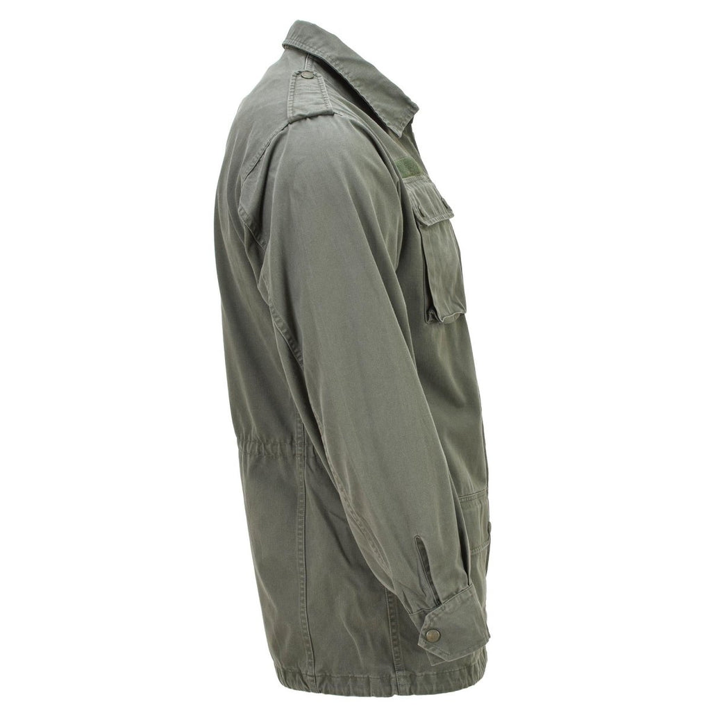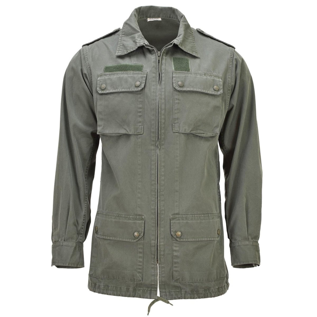 Veste classique militaire française originale avec grandes poches avant, couleur olive unie