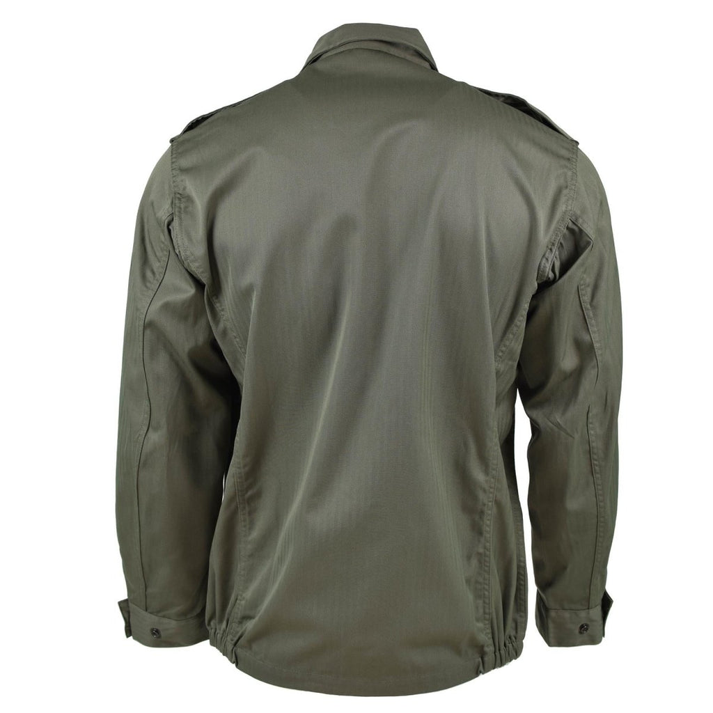 Présentation de la veste militaire vintage, une pièce authentique de l'armée française dotée de poignets réglables par boutons-pression, de deux poches avant zippées YKK, d'épaulettes et d'une ceinture élastique. Cette veste militaire vintage n'est pas seulement un vêtement ; cela ajoute de la polyvalence à votre garde-robe. Il se marie parfaitement avec des pantalons de combat, des jeans et plus encore, passant sans effort des vêtements militaires aux vêtements décontractés.