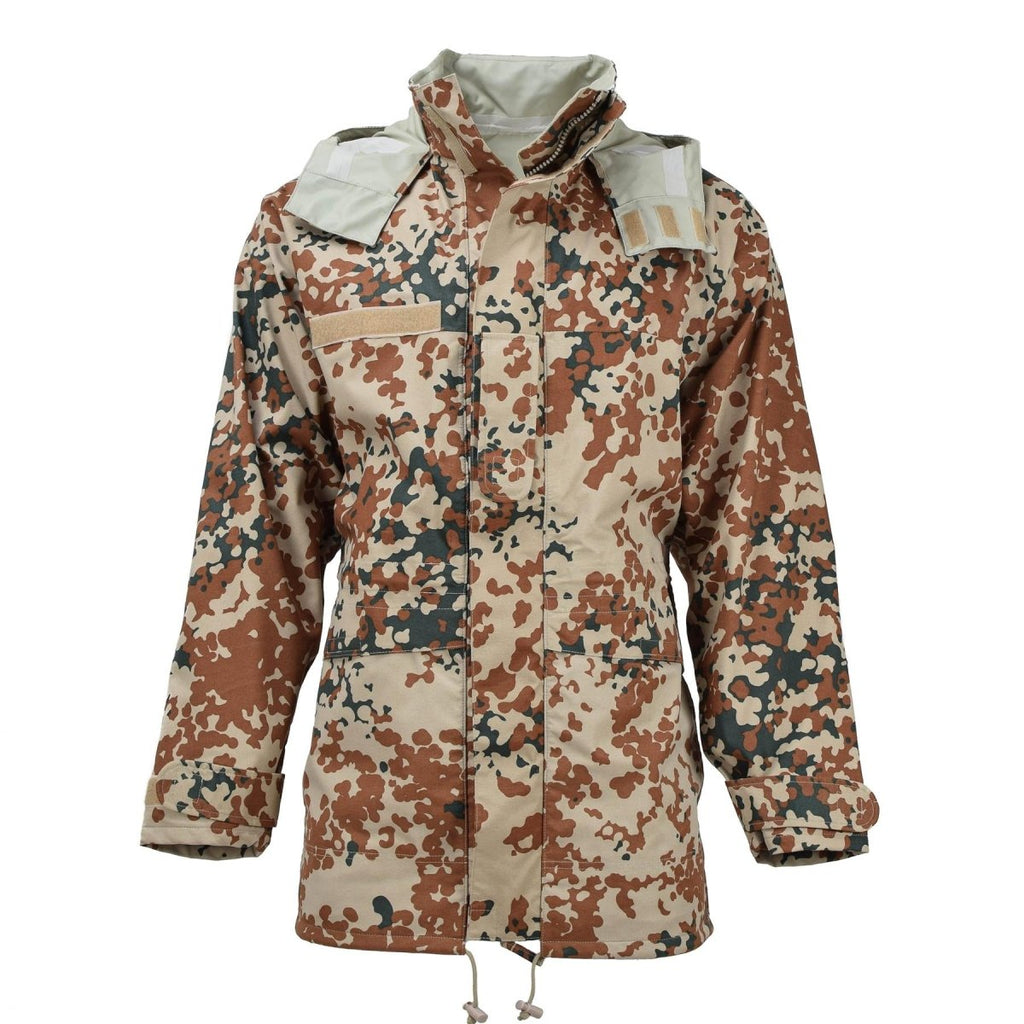 De plus, cette veste est livrée avec une plaque de crochet et de boucle sur le coffre, vous permettant de fixer des patchs ou des insignes pour une touche personnalisée. Que vous ayez fait de la randonnée, du camping ou de vous engager dans des opérations tactiques, cette veste de camouflage est le compagnon idéal. Restez au sec, restez à l'aise et restez élégant avec cette veste de pluie de l'armée danoise originale.
