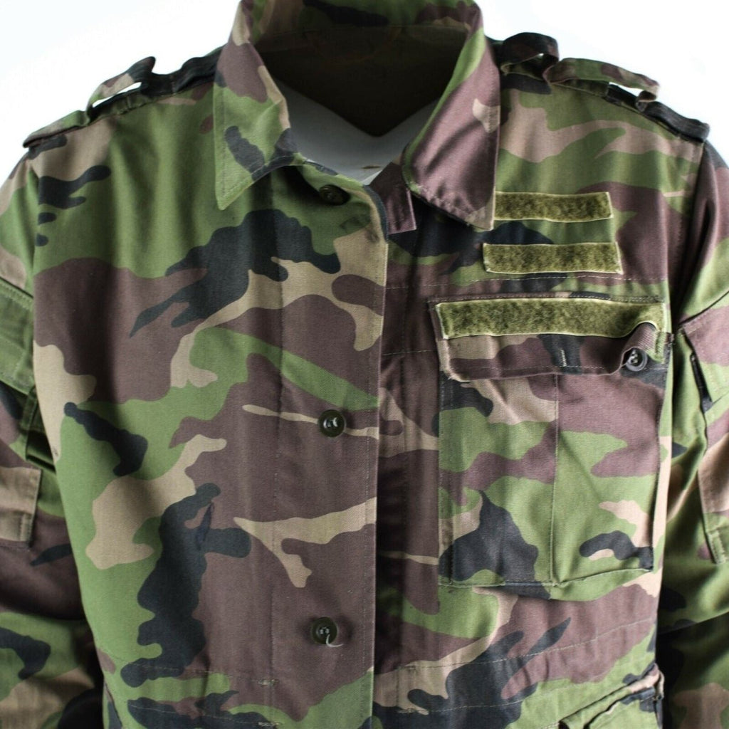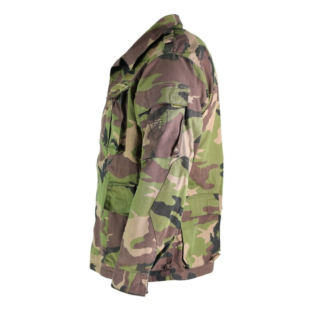 La veste militaire slovaque originale vintage M97 Camouflage est une veste utilisée par les forces armées slovaques à la fin des années 1990. Il est fabriqué à partir d'un matériau durable et résistant à l'eau et présente un motif camouflage conçu pour se fondre dans les environnements boisés.