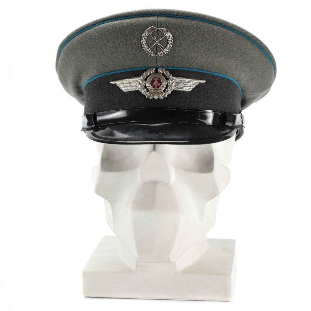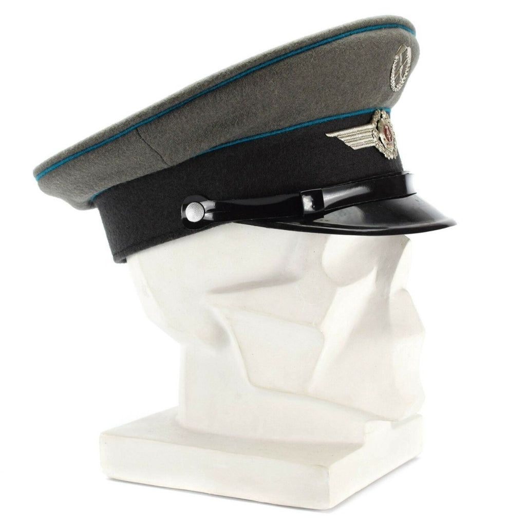 Chapeau à visière militaire des forces aériennes : Importance historique : Cette casquette à visière fait partie de la tenue militaire de l'ANV (Armée populaire nationale) de l'Allemagne de l'Est, spécialement conçue pour le personnel des forces aériennes. Il représente un morceau de l’histoire militaire, reflétant le style et les traditions de l’époque.